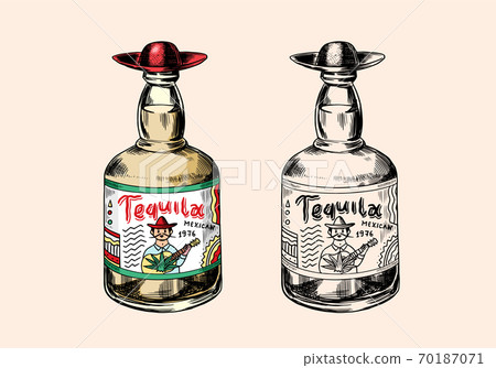 Glass Bottle With Strong Drink Vintage Mexican Stock Illustration